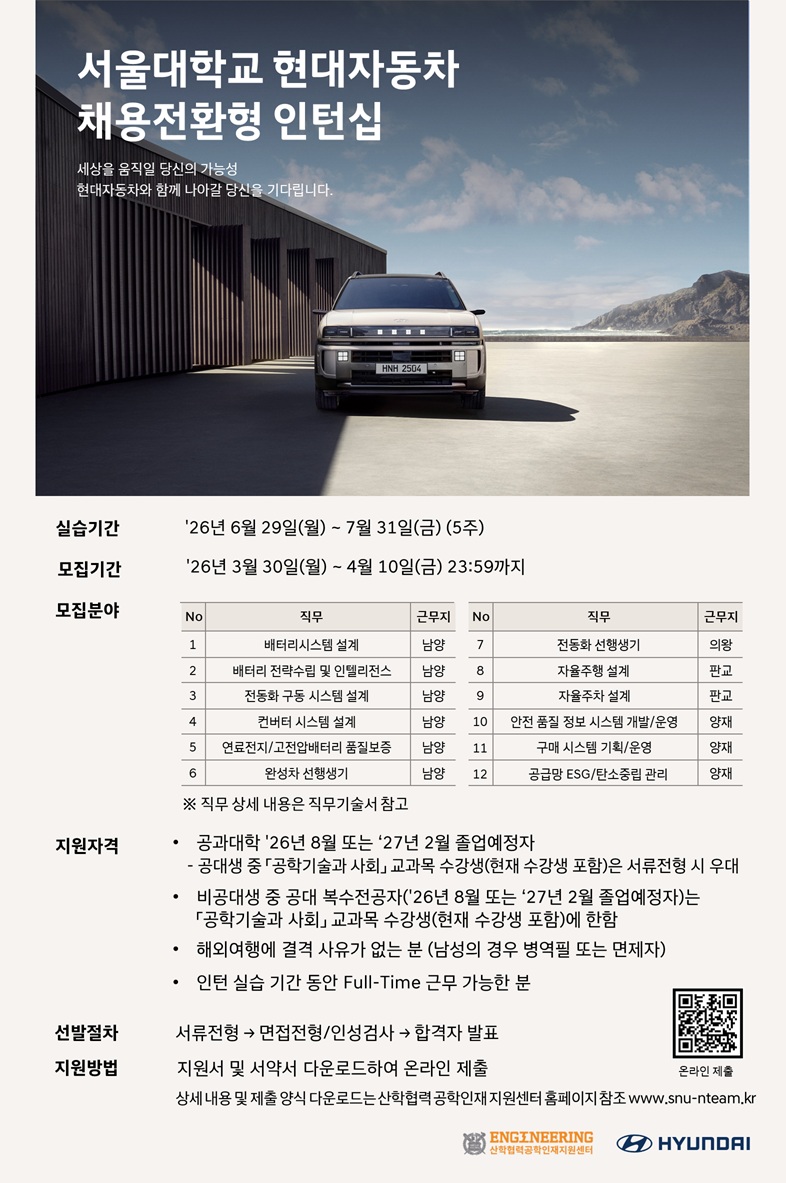 ※ 문의: 서울대학교 산학협력 공학인재 지원센터 구송이 / ekfu00@snu.ac.kr / 02-880-2254